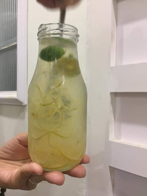 - vắt 1/2 trái quật hoặc chanh tưcho đá nếu uống lạnh hoặc nước sôi nếu uống ấm.